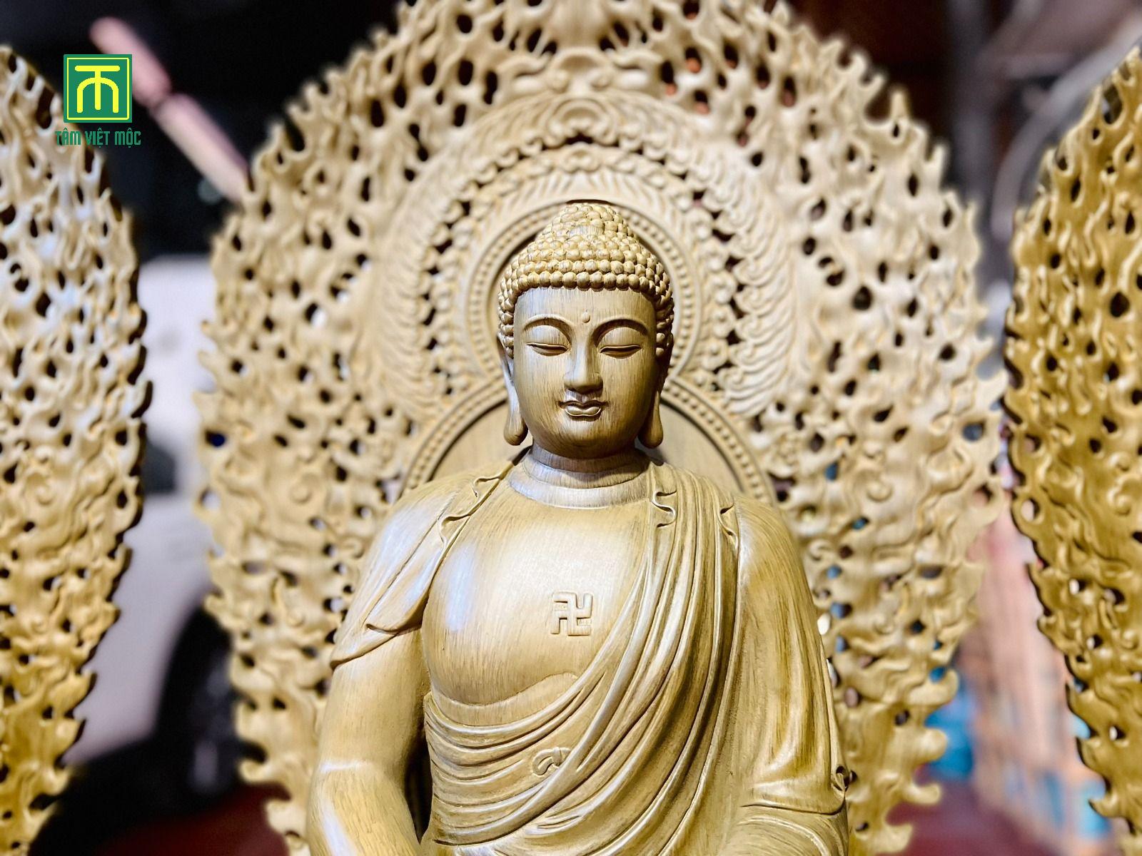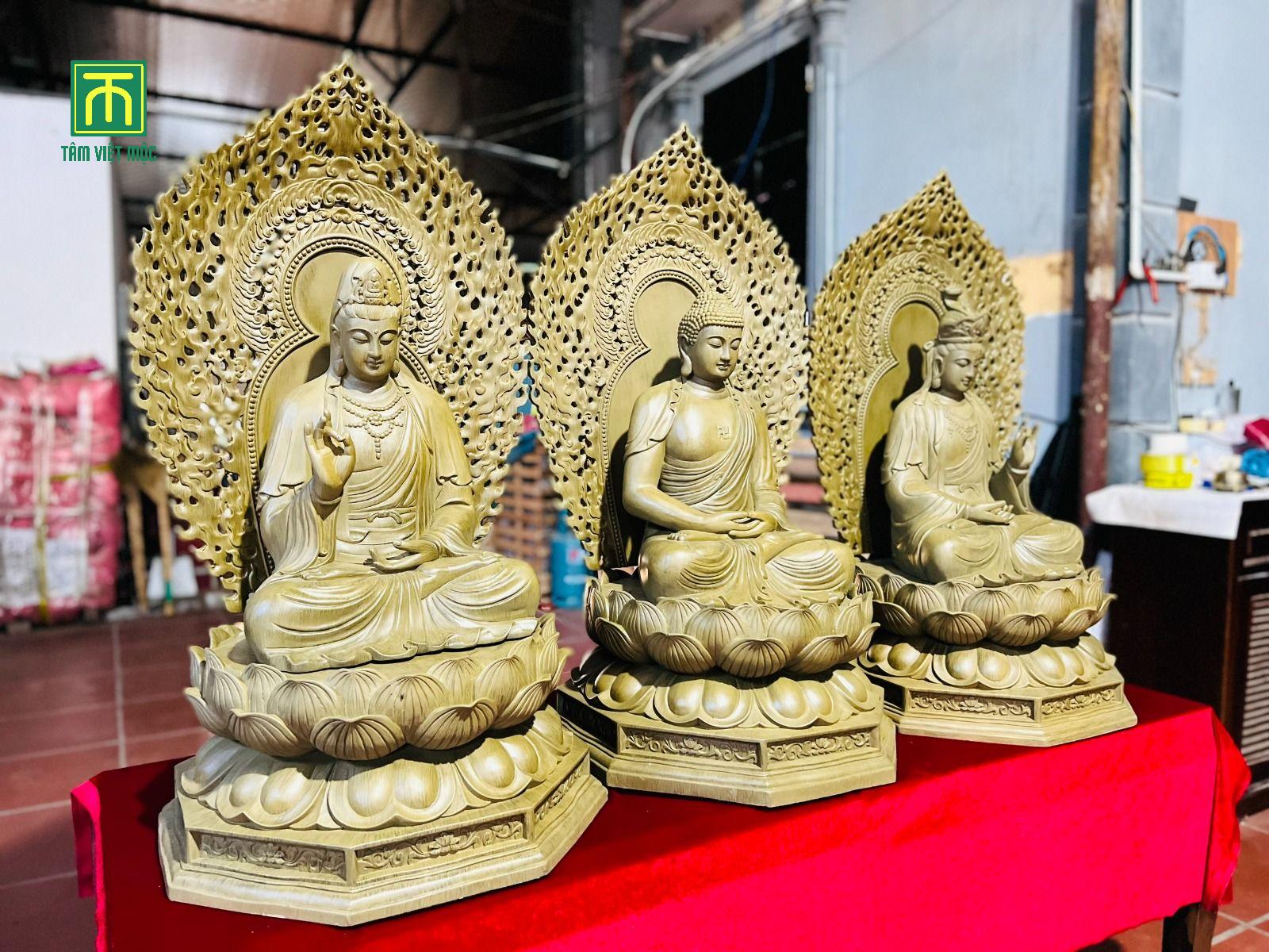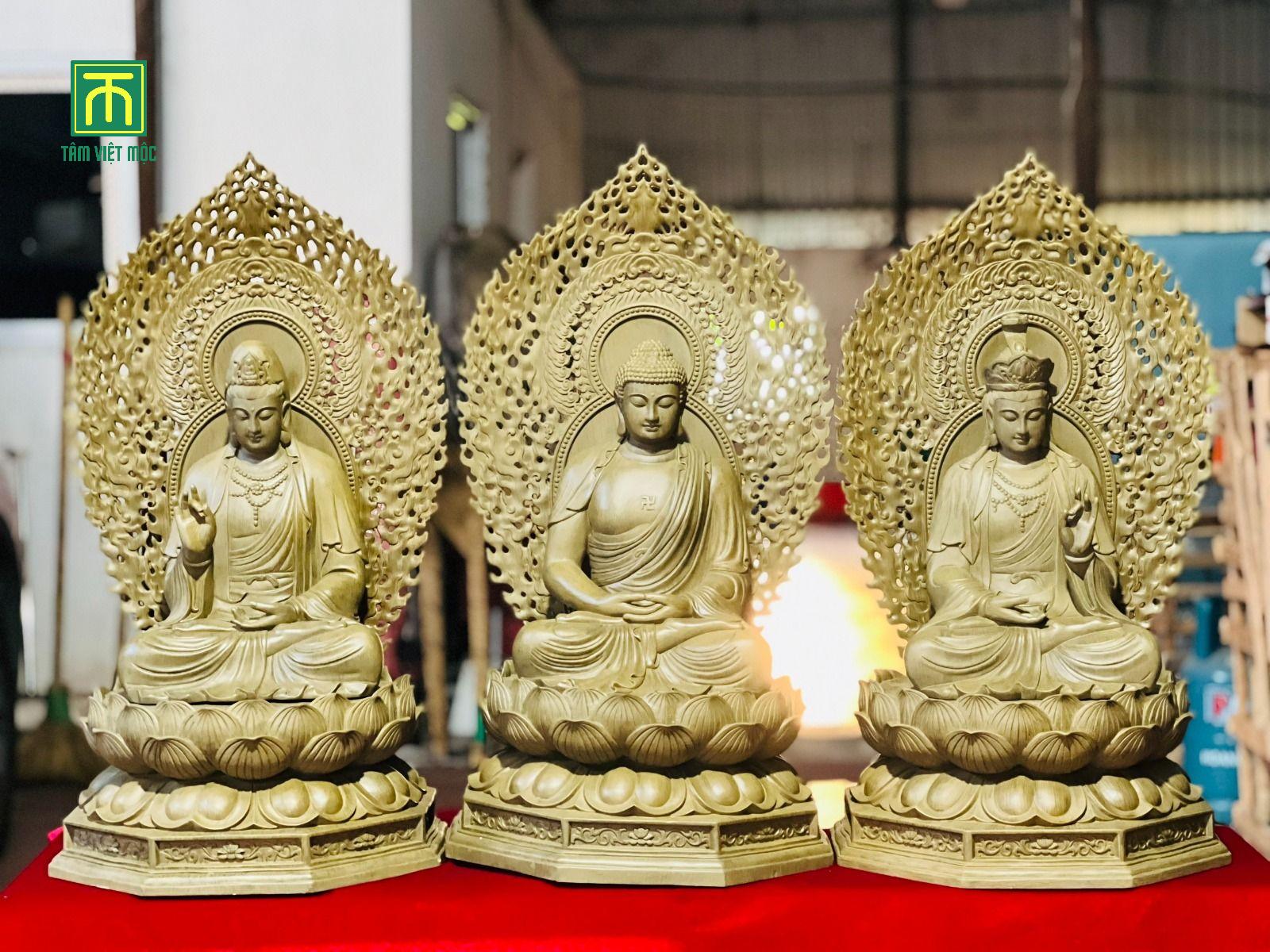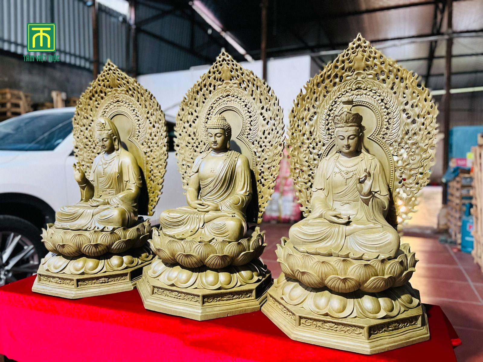 Trang chủ / Tượng Phật Tổ / Bộ tượng phật tây phương tam thánh gỗ cẩm vàng cao 90 ngang 50 sâu 50