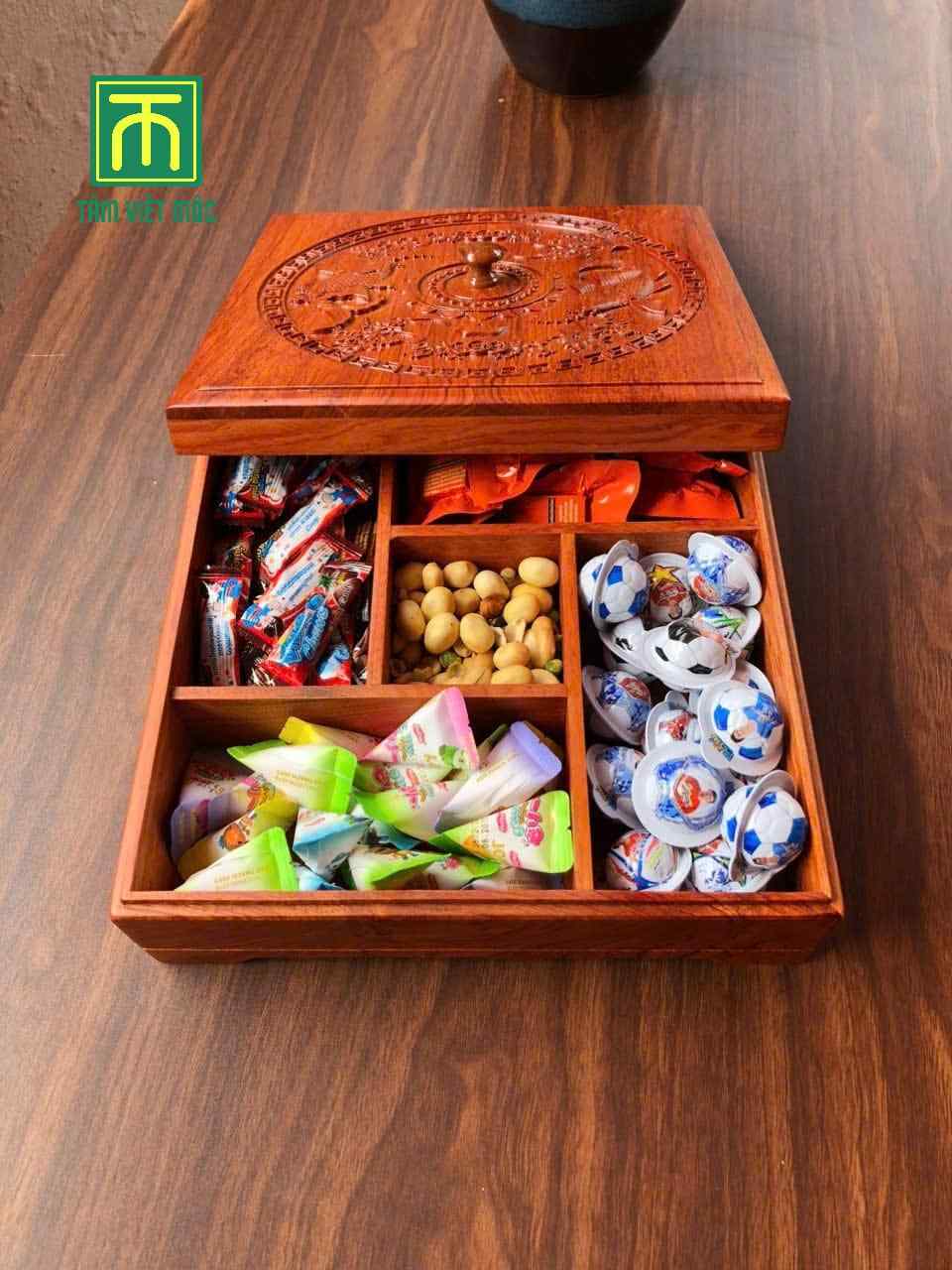Trang chủ / Khay đựng bánh kẹo / Khay đựng bánh kẹo gỗ hương dài 40 rộng 40 cao 13