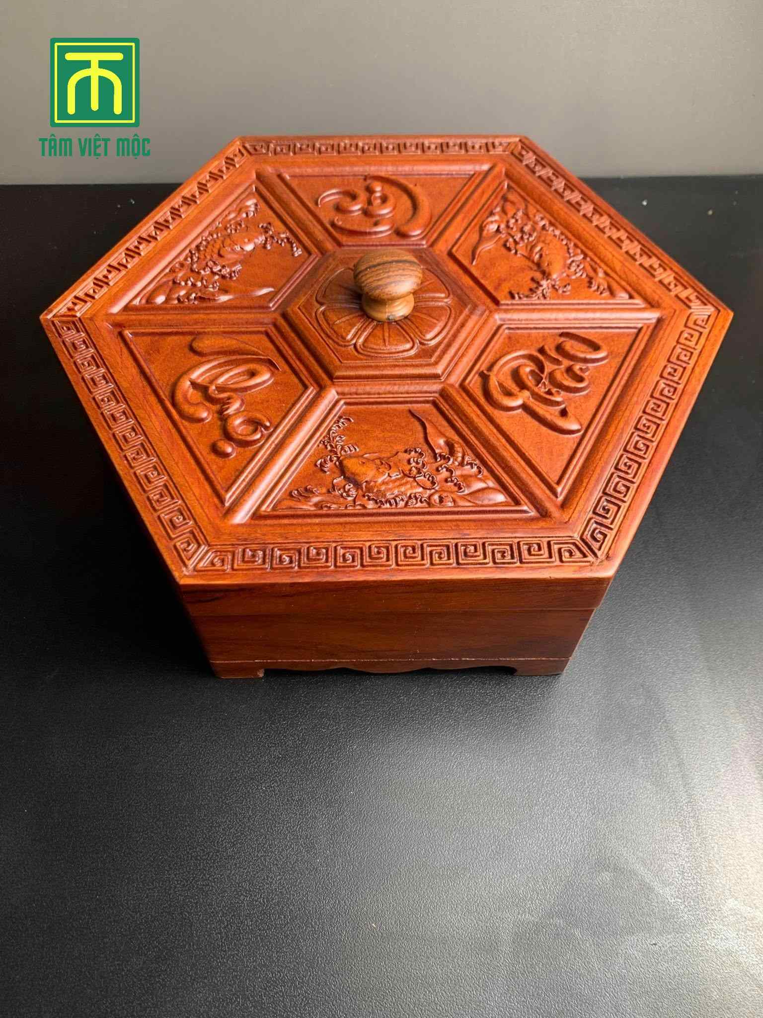 Trang chủ / Khay đựng bánh kẹo / Khay đựng bánh kẹo gỗ hương phúc lộc thọ dài 31 rộng 28 cao 11