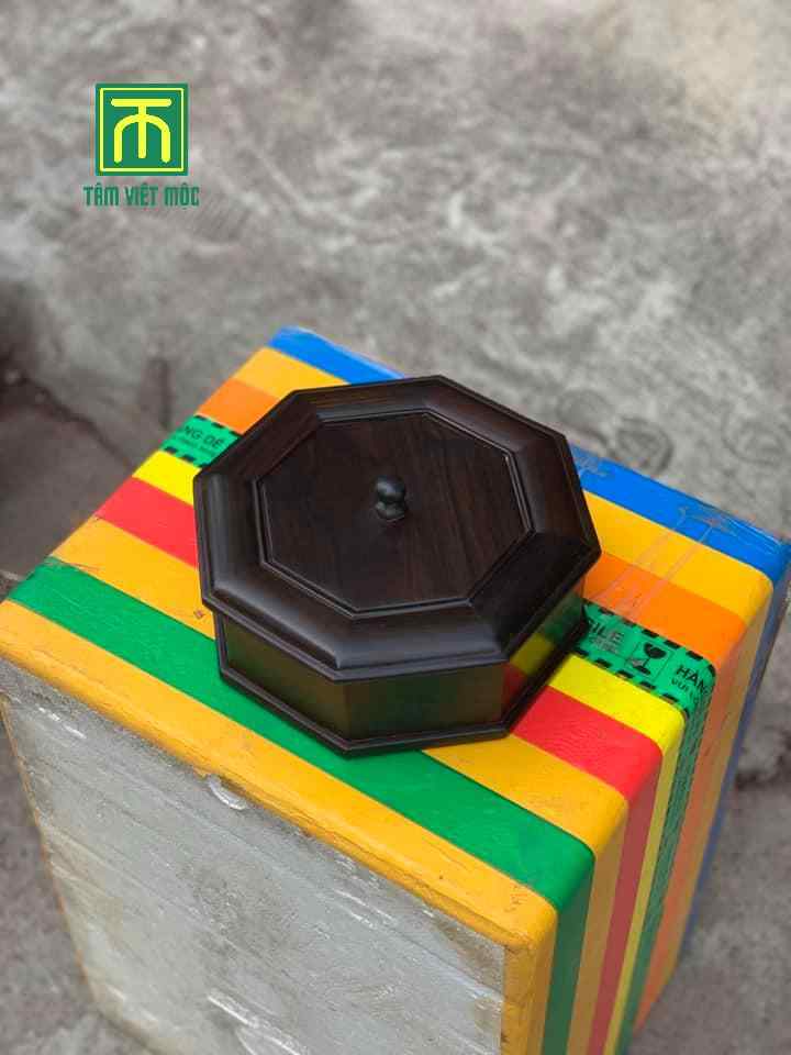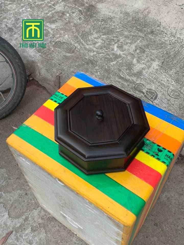 Trang chủ / Khay đựng bánh kẹo / Khay đựng bánh kẹo gỗ trắc hình lục giác 5 ngăn cao 15