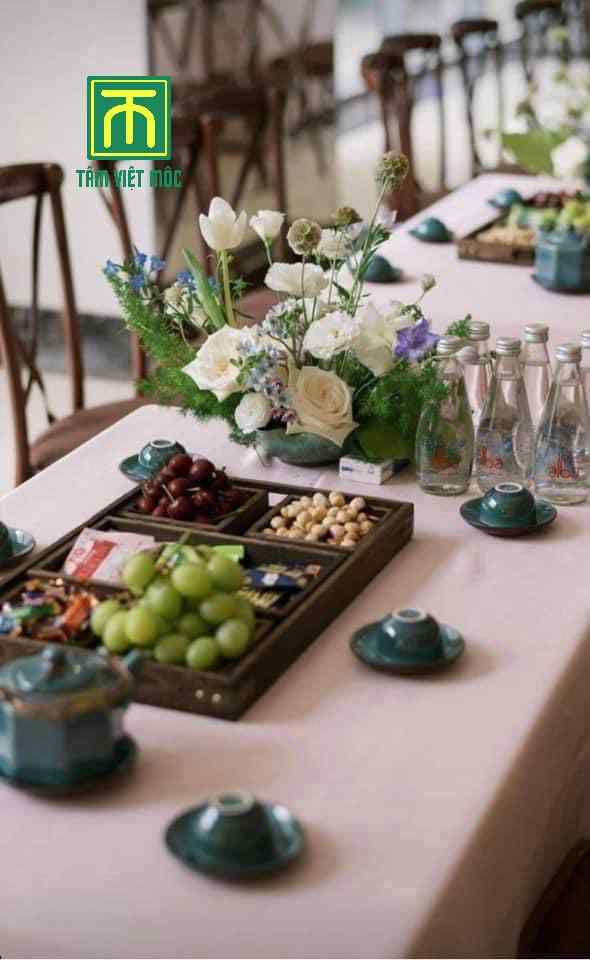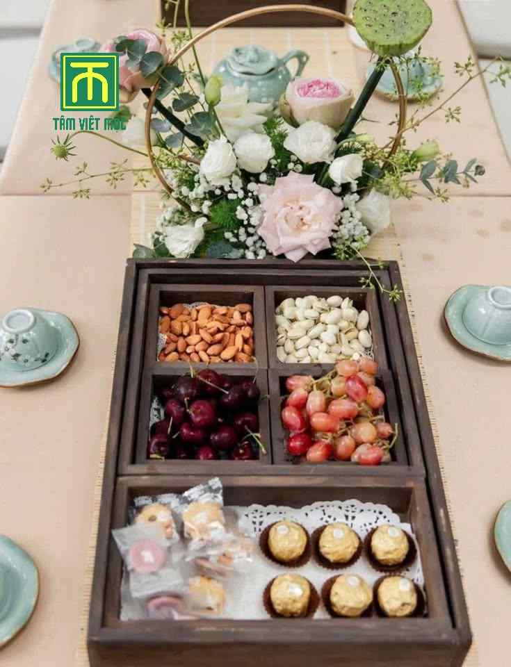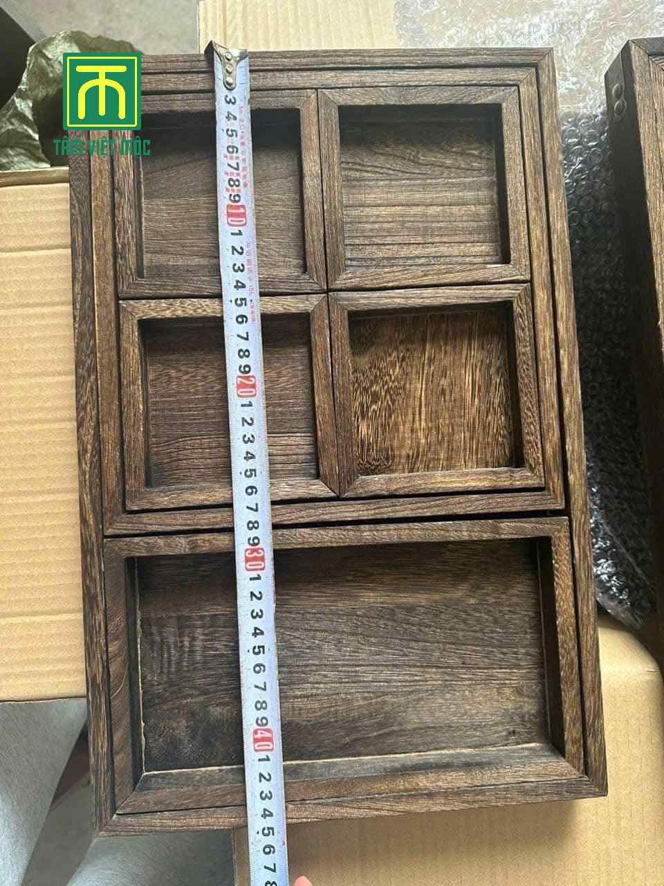 Trang chủ / Khay đựng bánh kẹo / Khay đựng bánh kẹo tết gỗ óc chó dài 45 rộng 25 dày 3