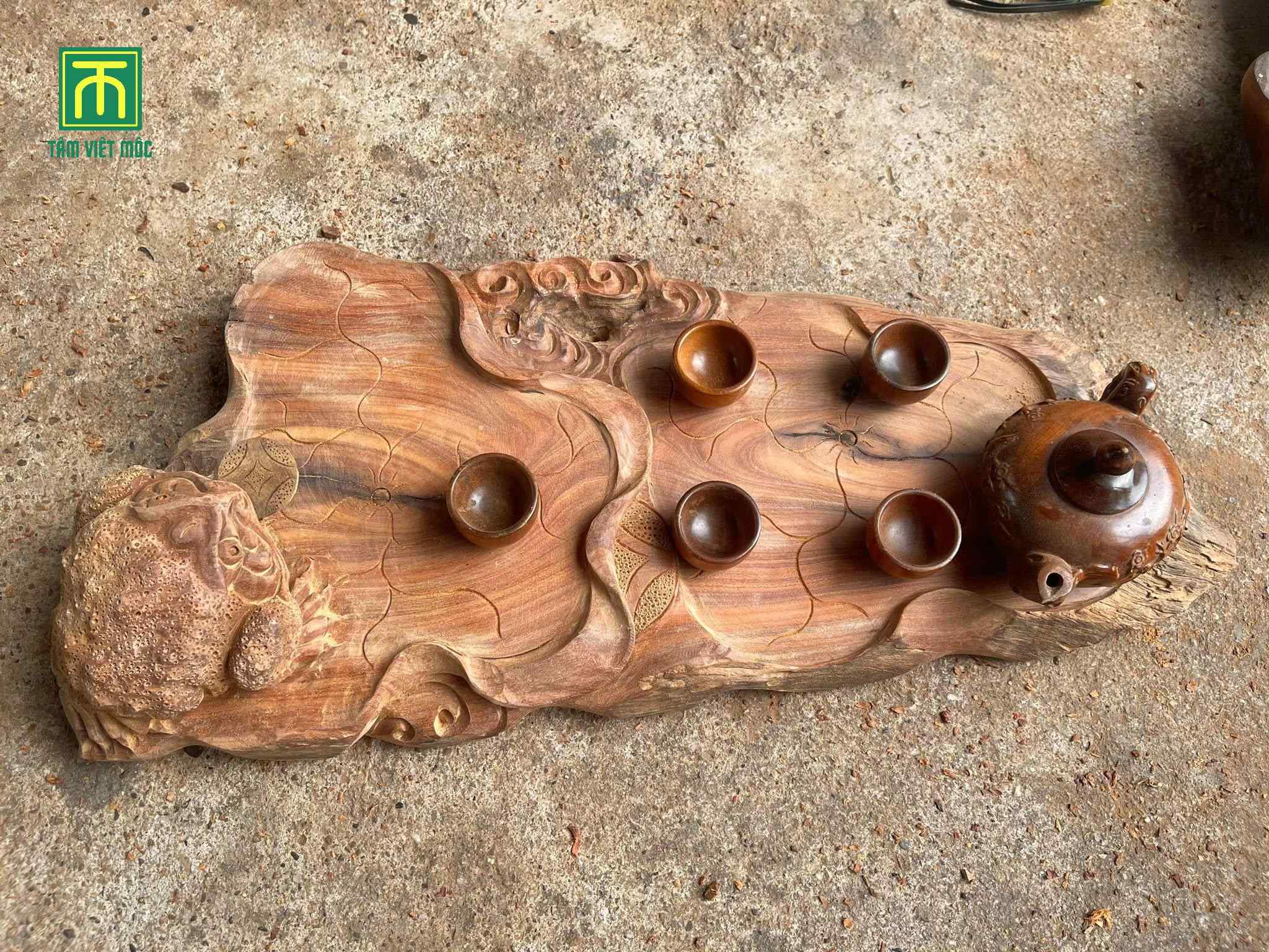 Trang chủ / Khay Trà Gỗ / Khay trà gỗ bách xanh có cóc ngậm tiền dài 60 rộng 30 dày 12