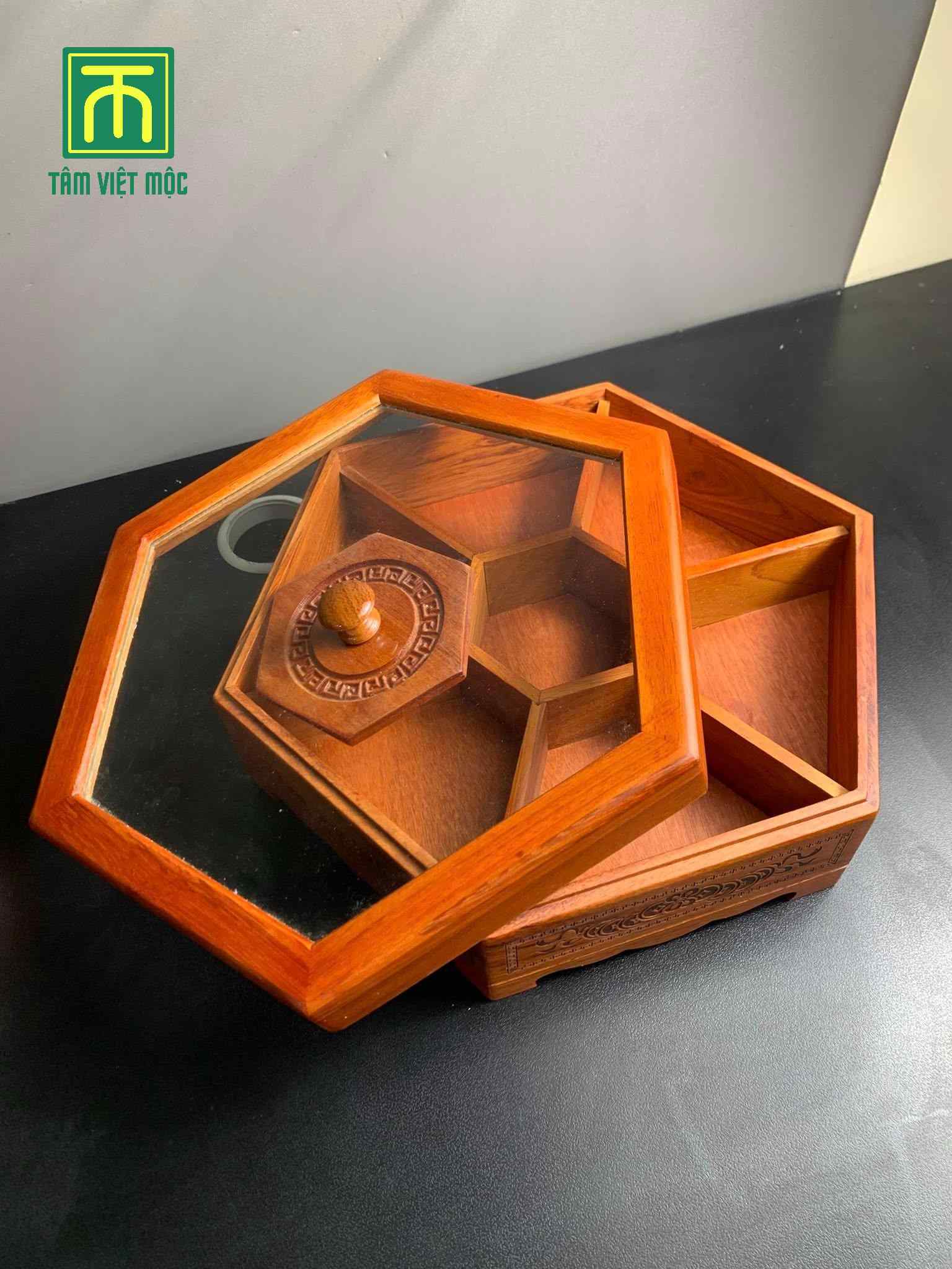 Trang chủ / Khay đựng bánh kẹo / Khay trà gỗ hương nắp kính dài 33 rộng 28 cao 11