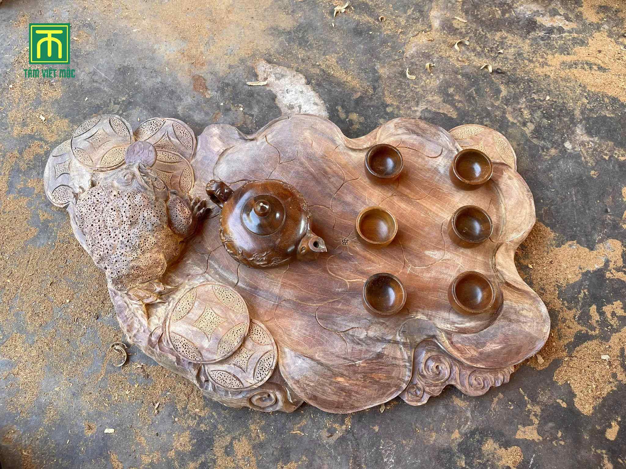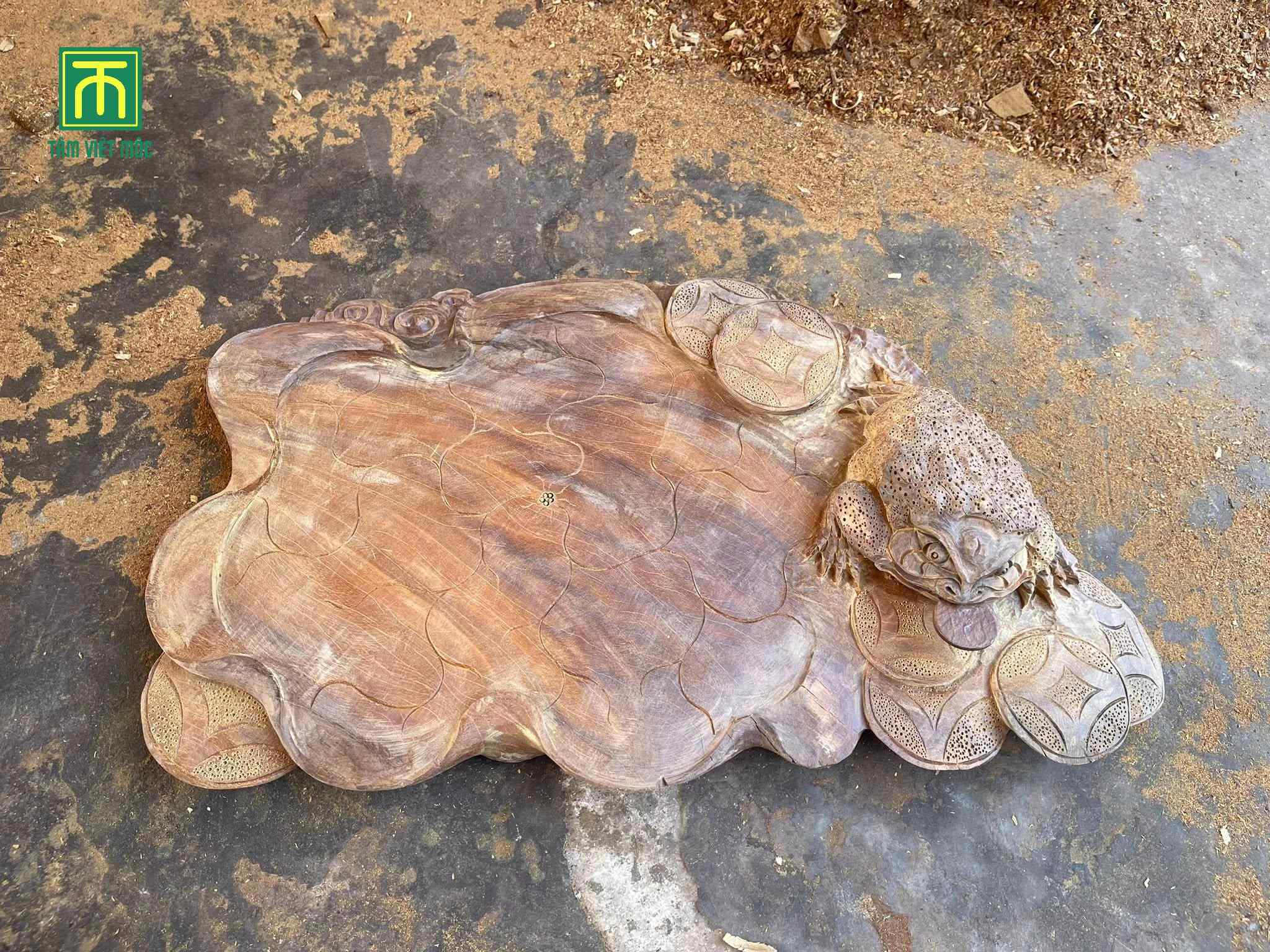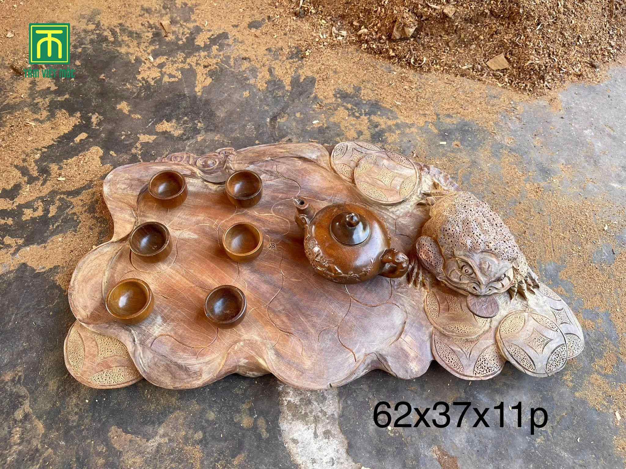 Trang chủ / Khay Trà Gỗ / Khay trà gỗ nghiến cóc ngậm tiền dài 62 rộng 37 dày 11