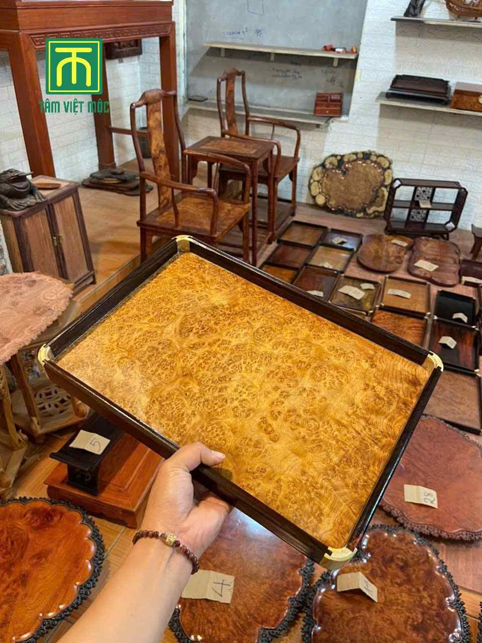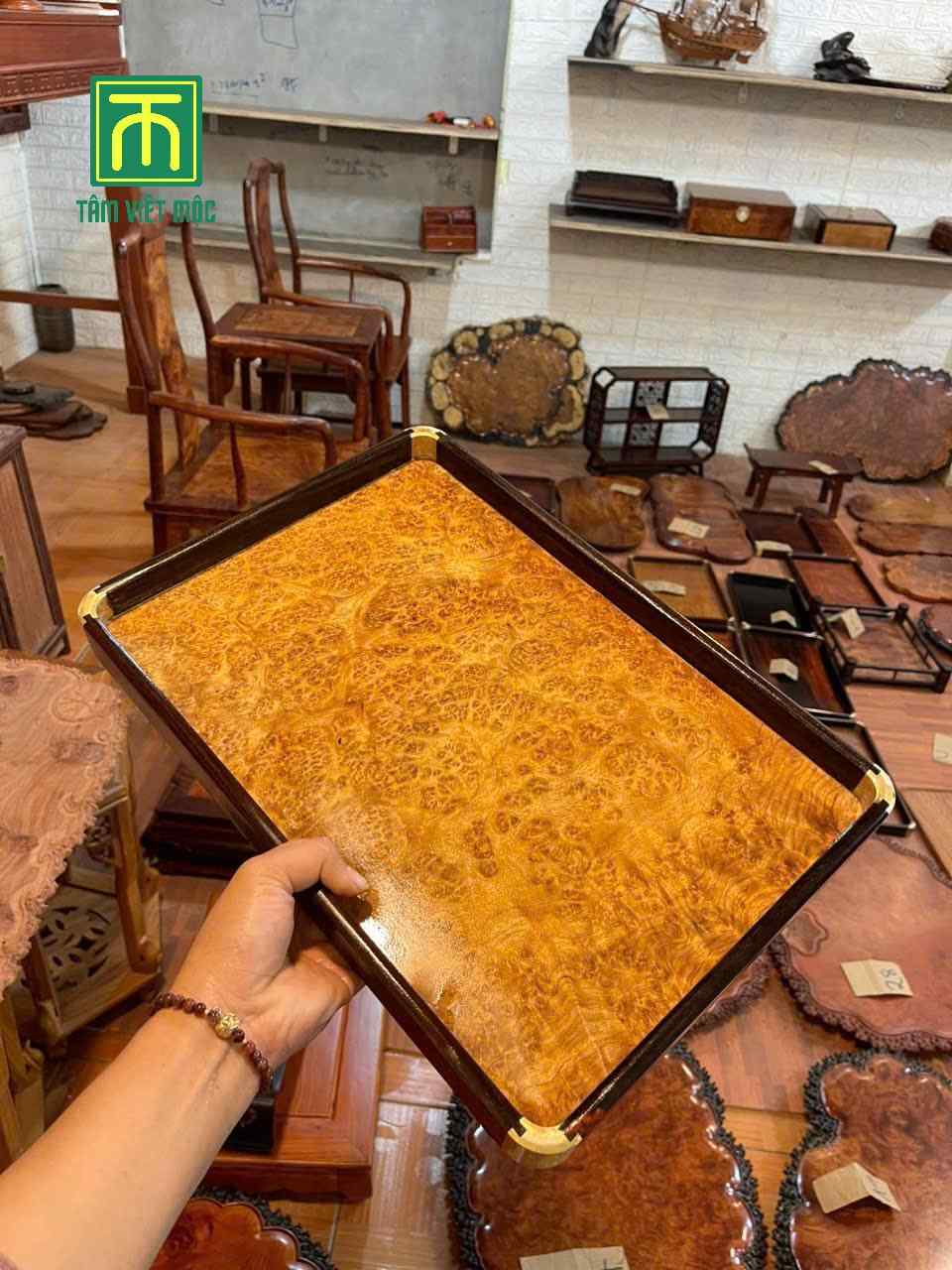 Trang chủ / Khay Trà Gỗ / Khay trà gỗ nu sưa dài 40 rộng 25 dày 3