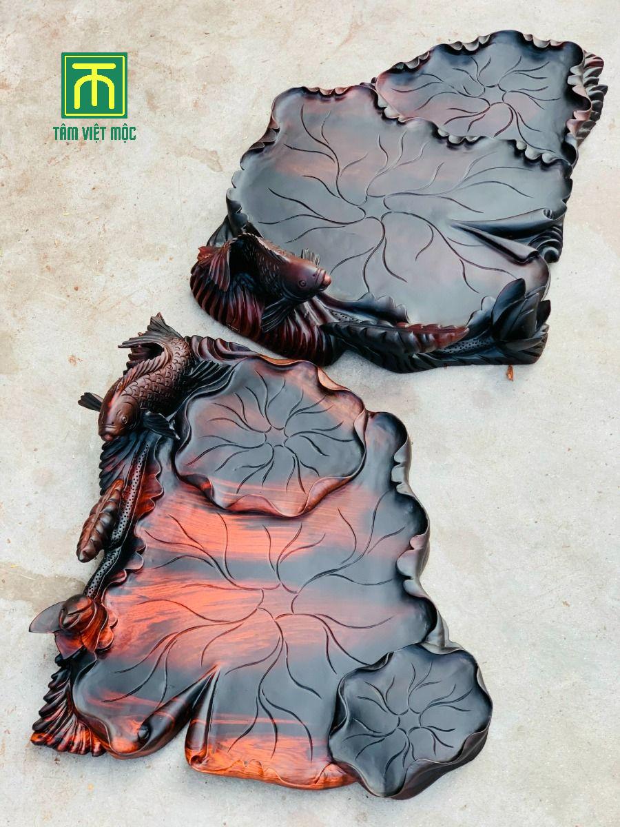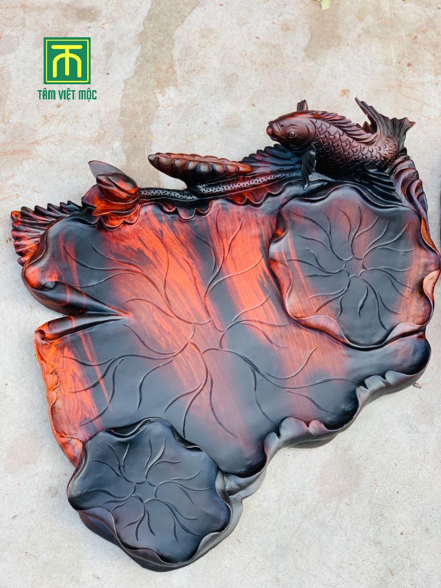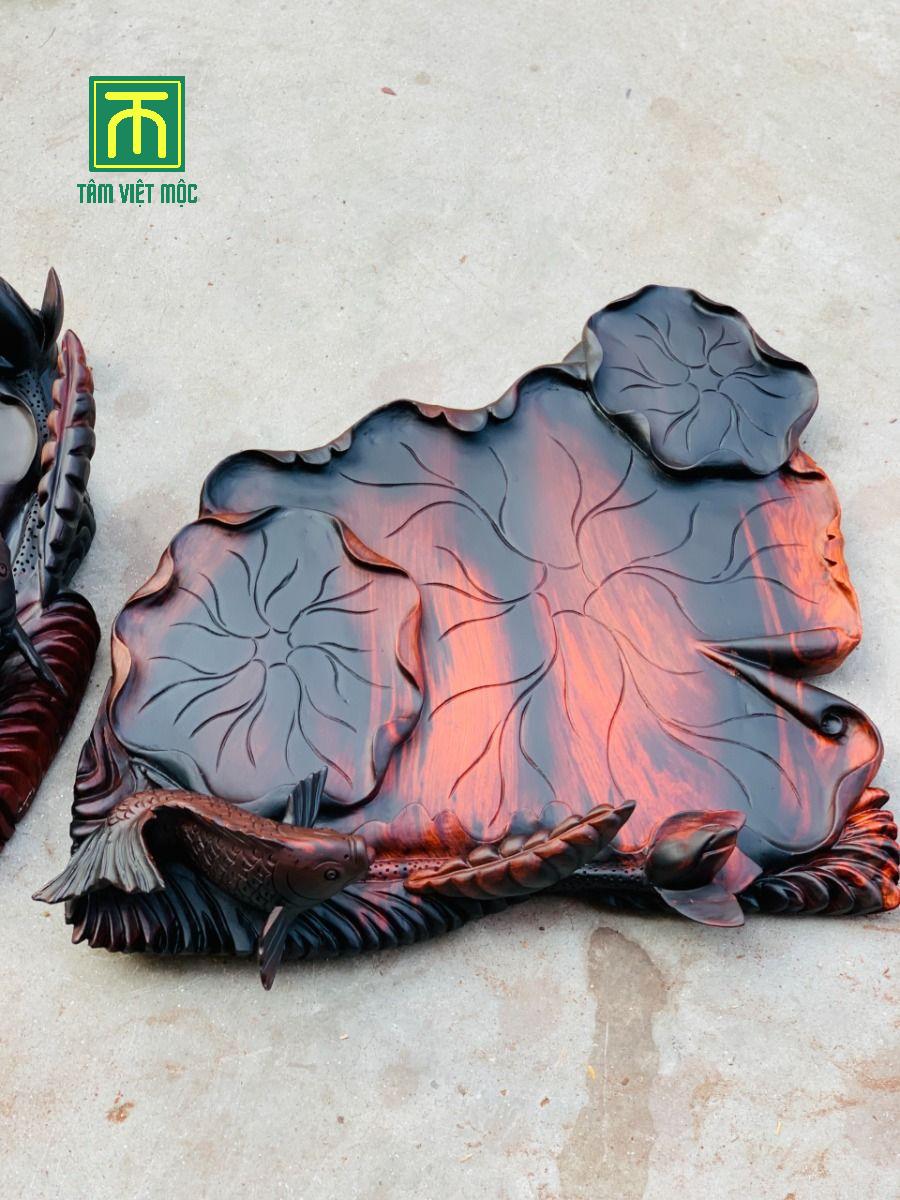 Trang chủ / Khay Trà Gỗ / Khay trà gỗ trắc hình lá sen dài 50 rộng 33 dày 4
