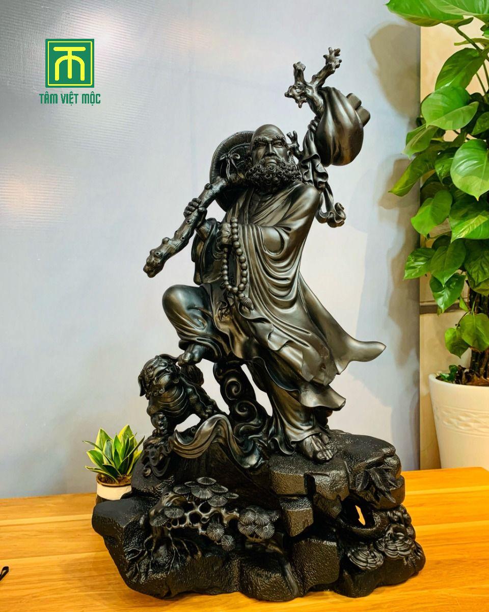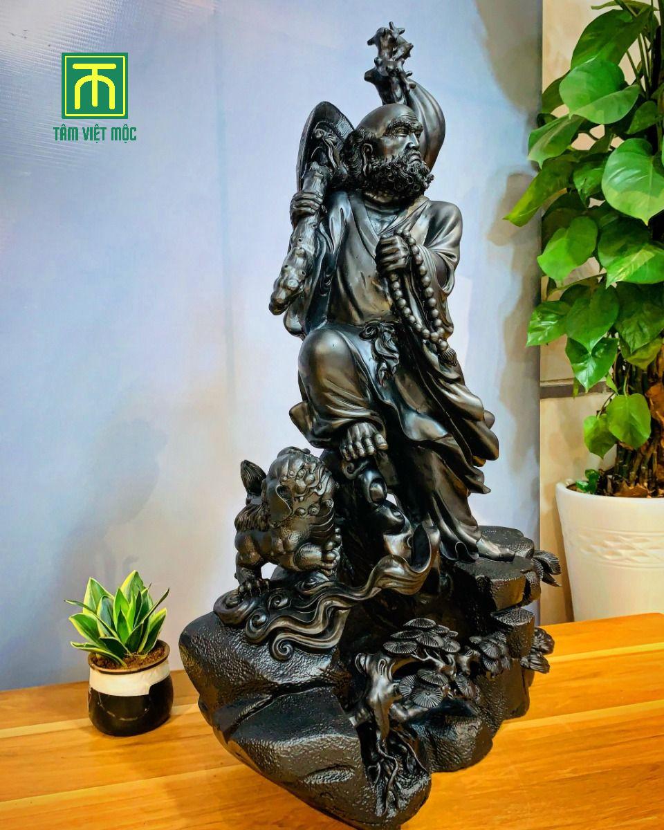 Trang chủ / Tượng Đạt Ma / Tượng đạt ma phục nghê gỗ mun sừng cao 95 ngang 50 sâu 32